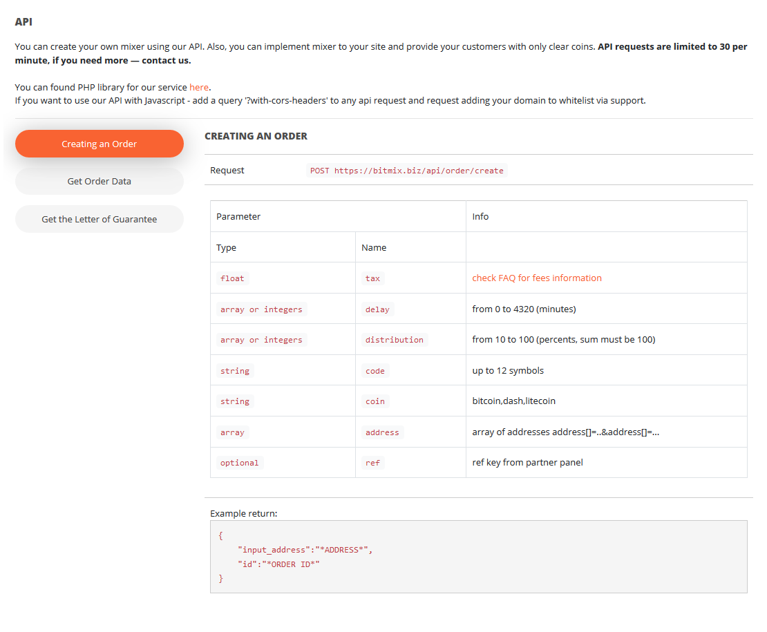 BitMix.Biz is a cryptocurrency mixing service that confuses the traces of Bitcoin, Litecoin and Dash transactions, clearing coins of information about previous transfers. The algorithms of randomization, deferred transaction in time, variable commission of 0,4%-4% complicate the tracking of your operations with cryptocurrency so much that make it impossible.