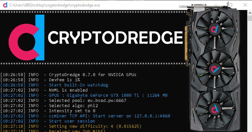 CryptoDredge is a simple in use and highly optimized cryptocurrency mining software. It takes full advantage of modern NVIDIA graphics cards through the use of unique optimization techniques. We have also devoted great attention to stable power consumption. These benefits, along with the very small developer fee, make our product one of the best publicly available miners.
