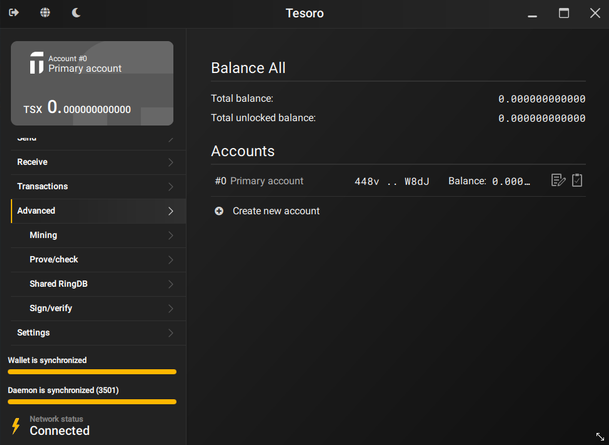 Tesoro GUI Wallet detalji